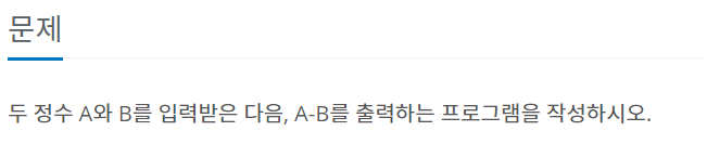 #include <stdio.h> int main(void) { int a,b,c; scanf_s("%d %d",&a,&b); c = a - b; printf("%d",c); }# 결과